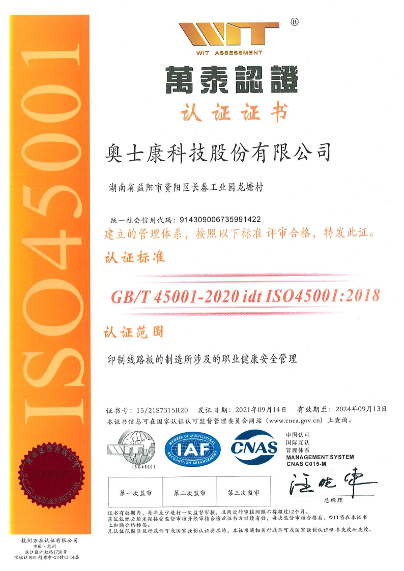 ISO45001(有效期至2024年9月13日)